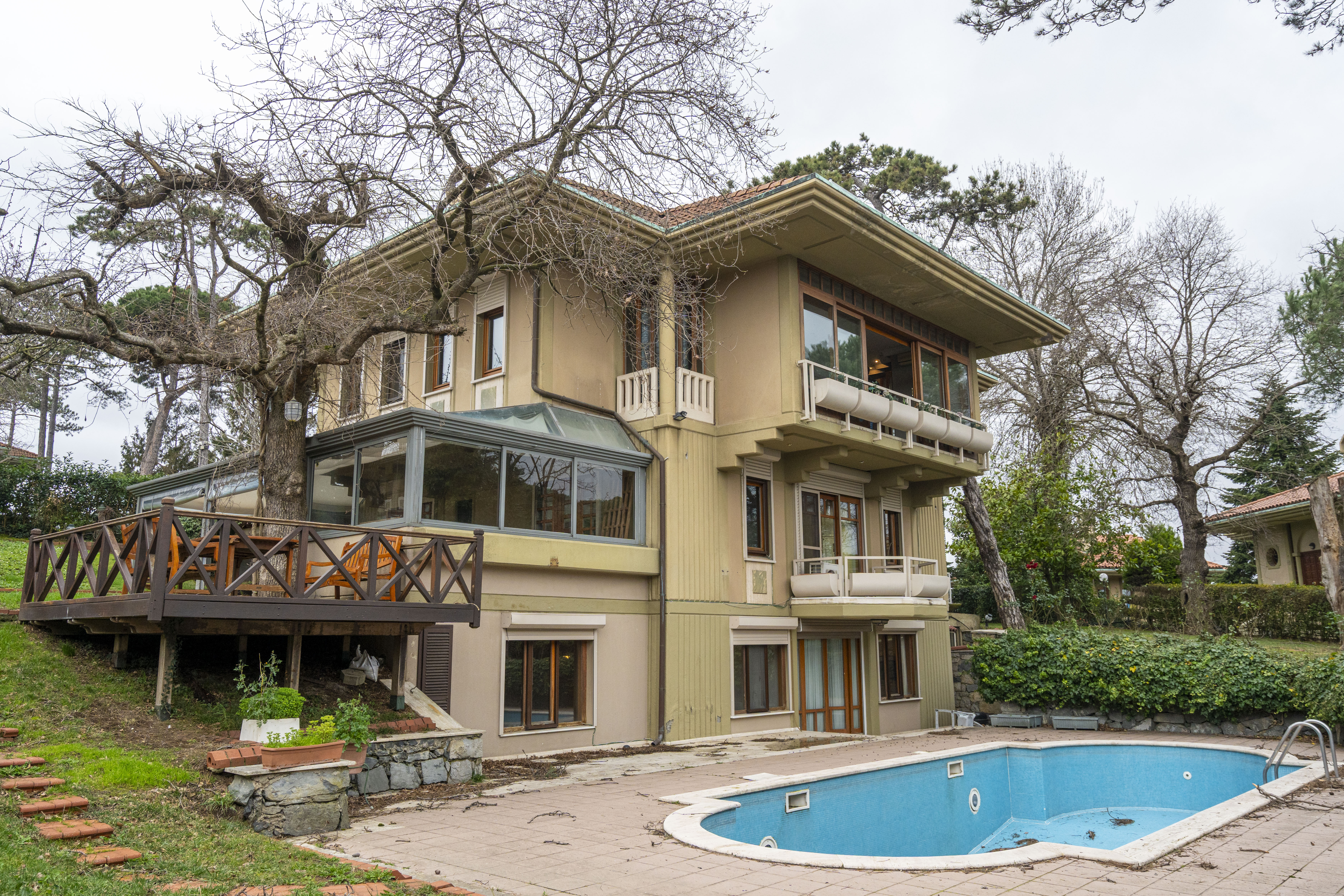 Tarabya Üstay villaları B kapısında köşe parsel geniş bahçeli, 550 m2 brüt alana sahip villa.