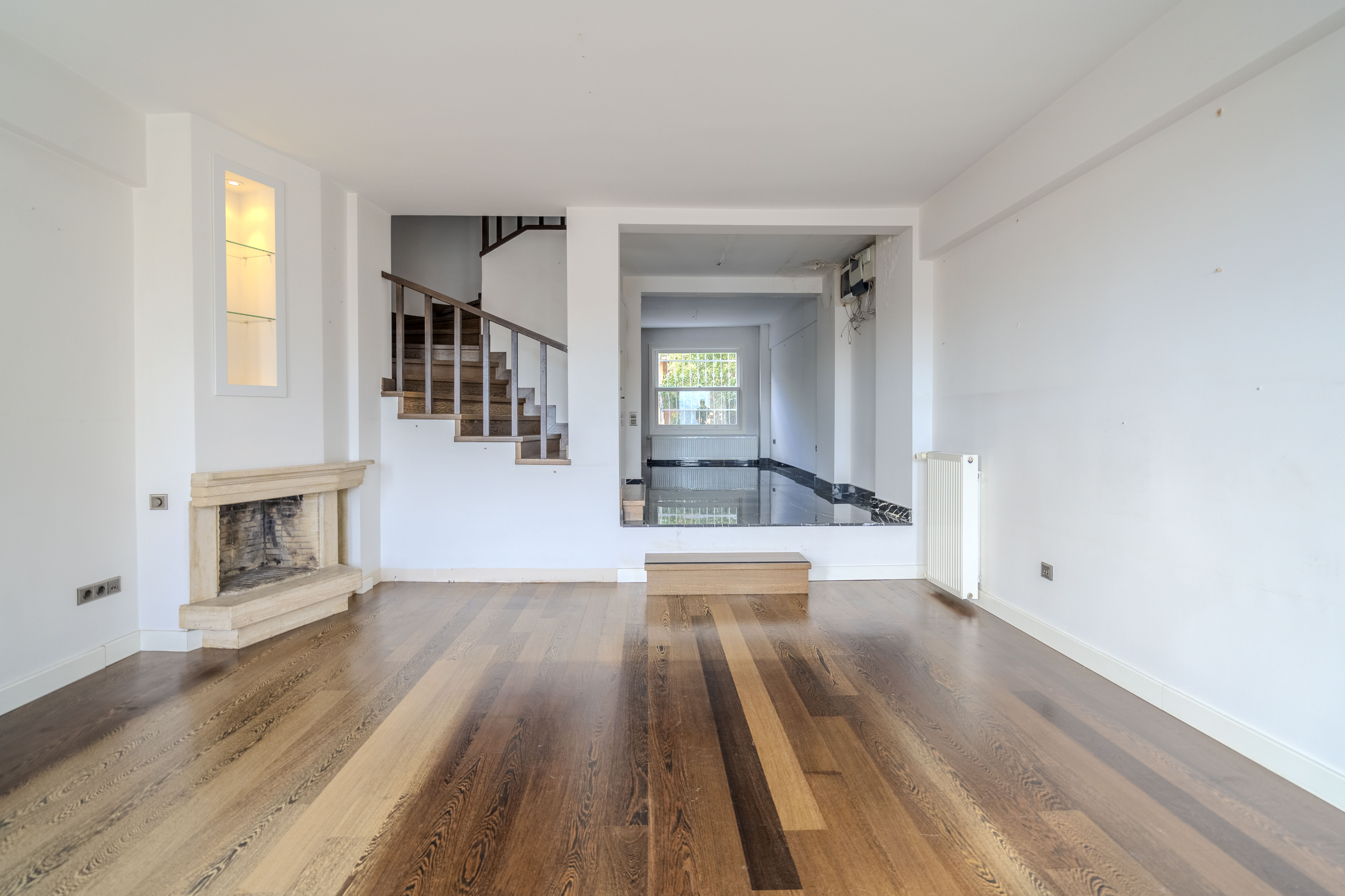 Giriş katında şömineli ve cumbalı zarif salon ile tasarım mutfak;