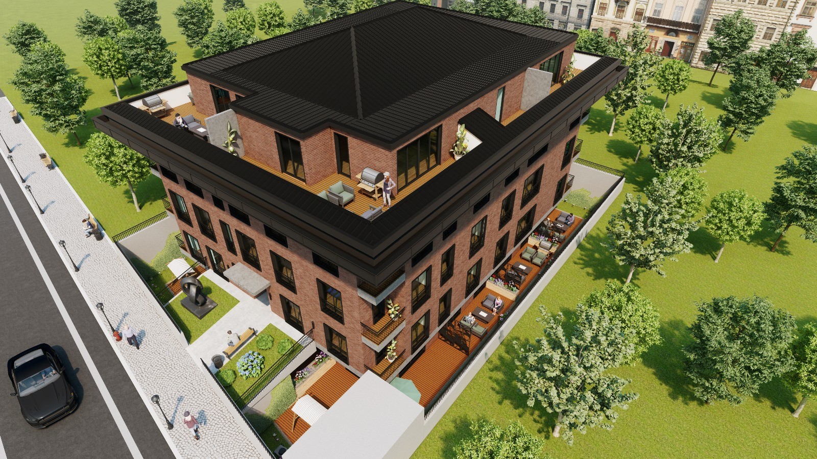 Etiler Çamlık'ta Yeni Binada Satılık 1+1 Köşe Bahçe Katı